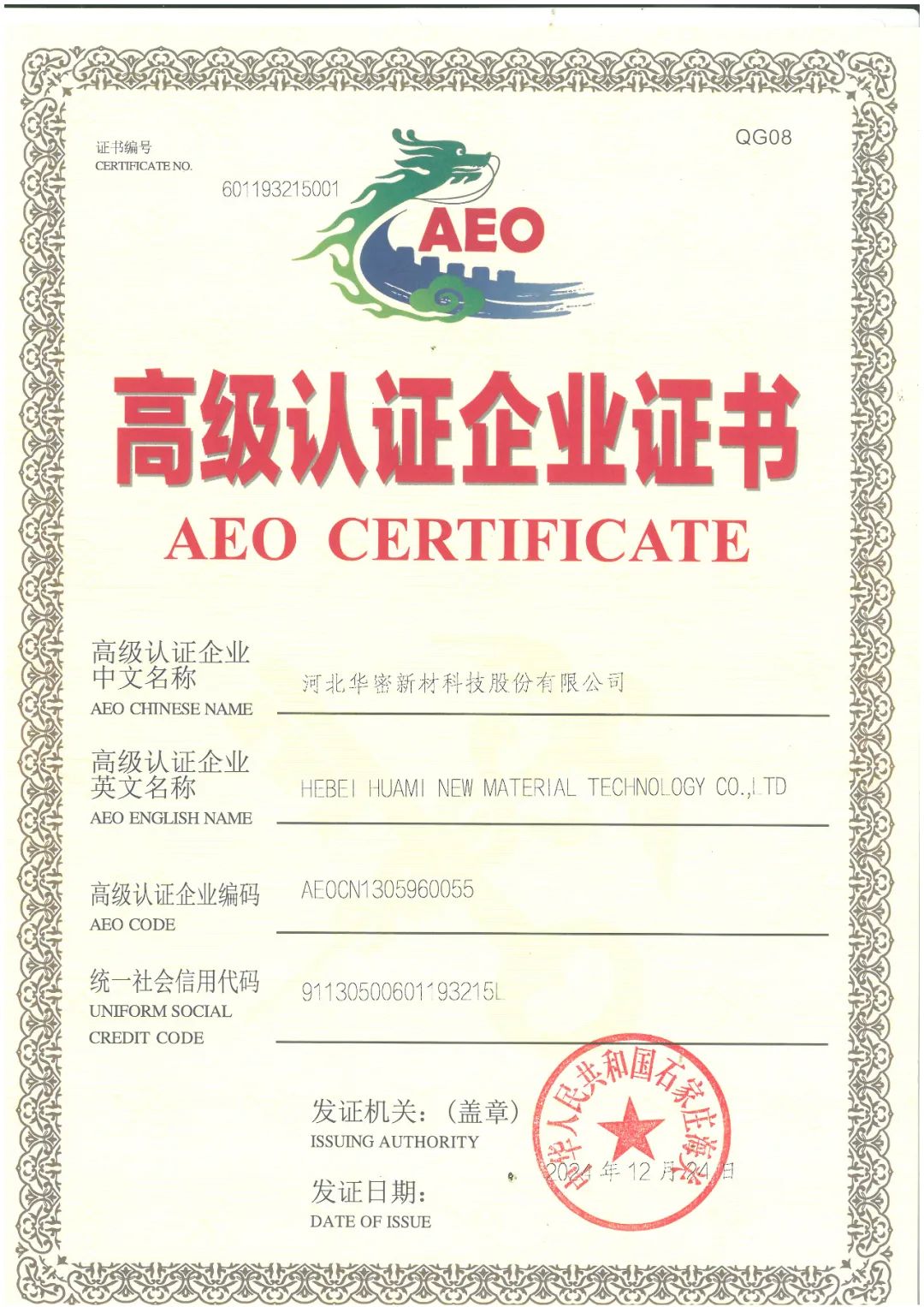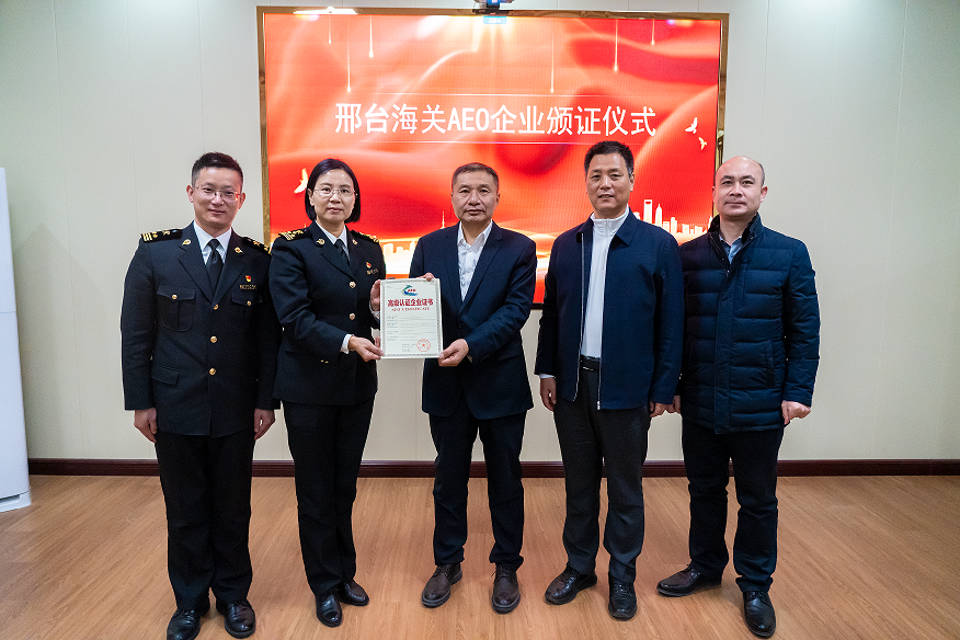 经过邢台市海关近半年重点培育,2025年1月9日,邢台市海关副关长张丽粉、科长王昭祯为河北华密新材科技股份有限公司(以下简称“华密新材”)颁发了海关AEO(Authorized Economic Operator)高级认证证书;这标志着我公司在国际贸易合规性、供应链安全和跨境贸易管理方面又向前迈进了一大步,为公司进一步拓展国际市场奠定了坚实基础。