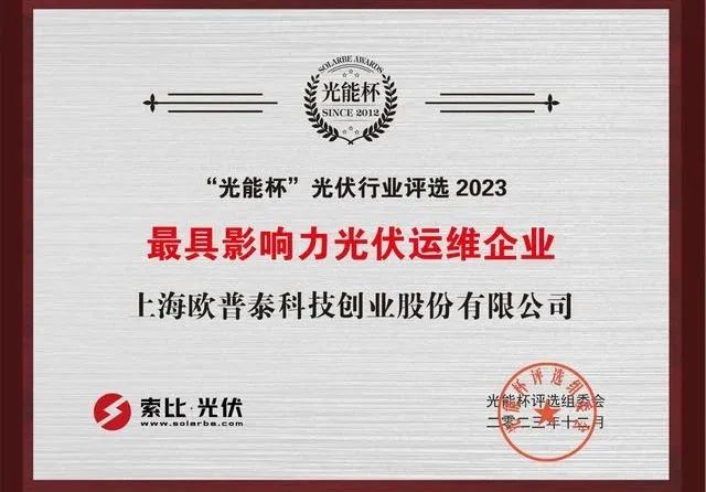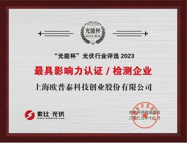 凭借涵盖组件生产前后工序全链检测的智能制造AI系统解决方案、出色的电站运维服务实力、卓越的品牌影响力,欧普泰斩获2023年度最具影响力“智造”企业、2023年度最具影响力认证/检测企业、2023年度最具影响力光伏运维企业三大奖项,用实力诠释产品品质与服务保障,再度彰显行业标杆的力量!