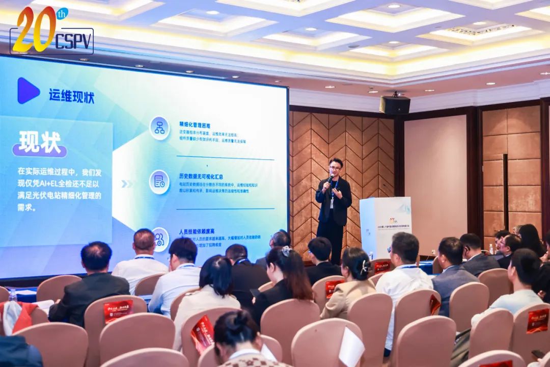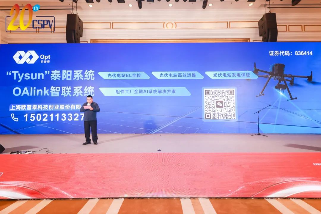 欧普泰电站事业部项目总监宋诗昊在会场全面系统的介绍了为解决巨大的存量电站及新建电站高质量发展和精细化运维需求,欧普泰推出的基于EL全检的光伏电站资产AI托管服务——“泰阳”系统。