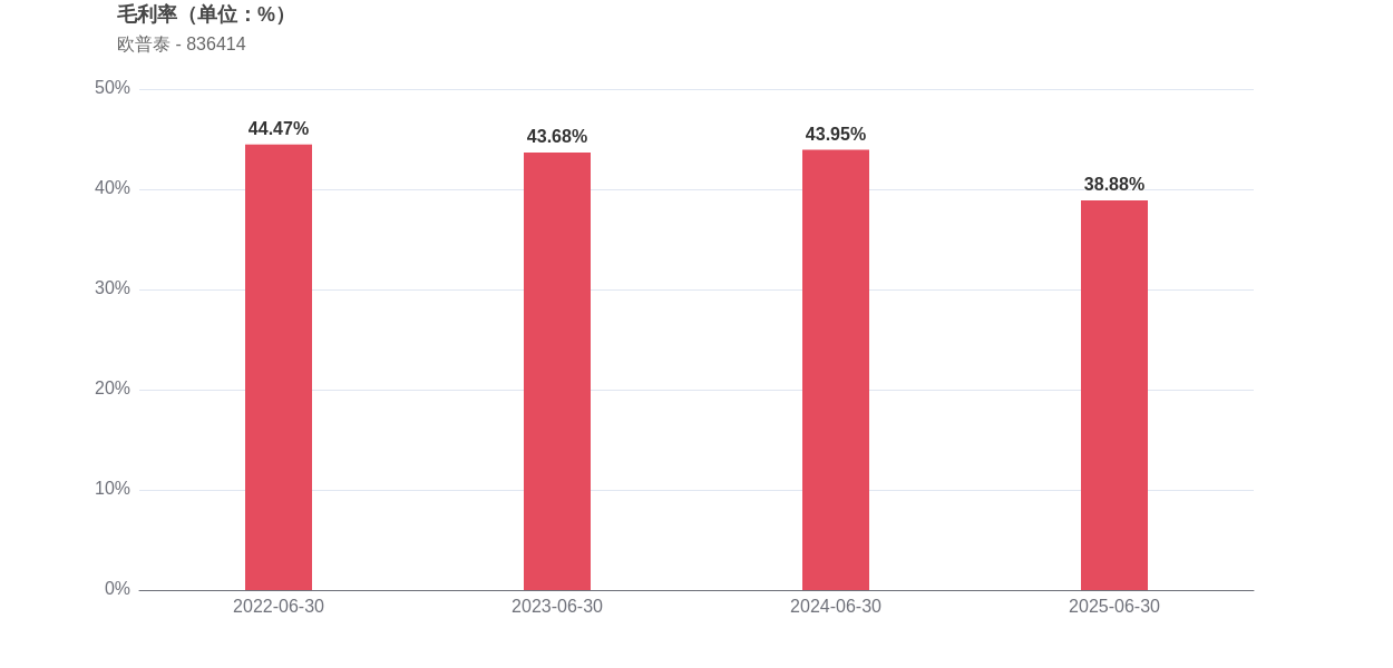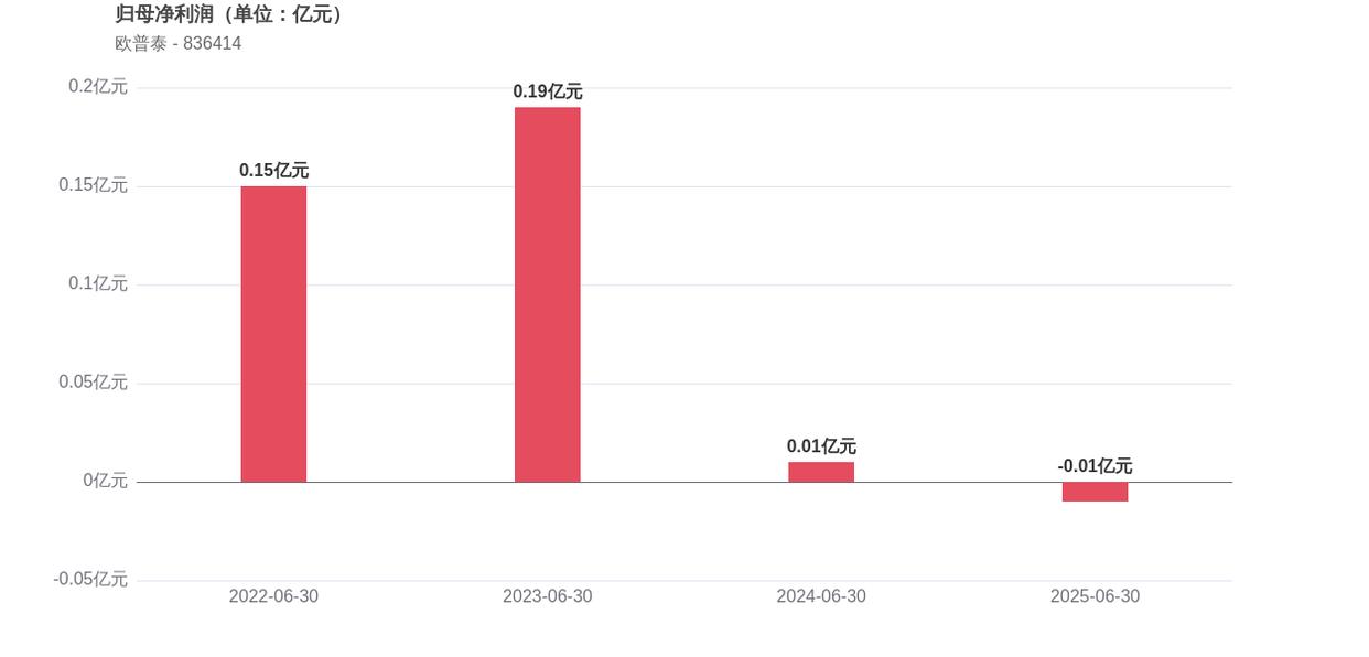 在2025年上半年,欧普泰的经营业绩承压明显,营业收入0.40亿元,同比下滑24.06%,归母净利润出现亏损0.01亿元,同比下滑206.96%。