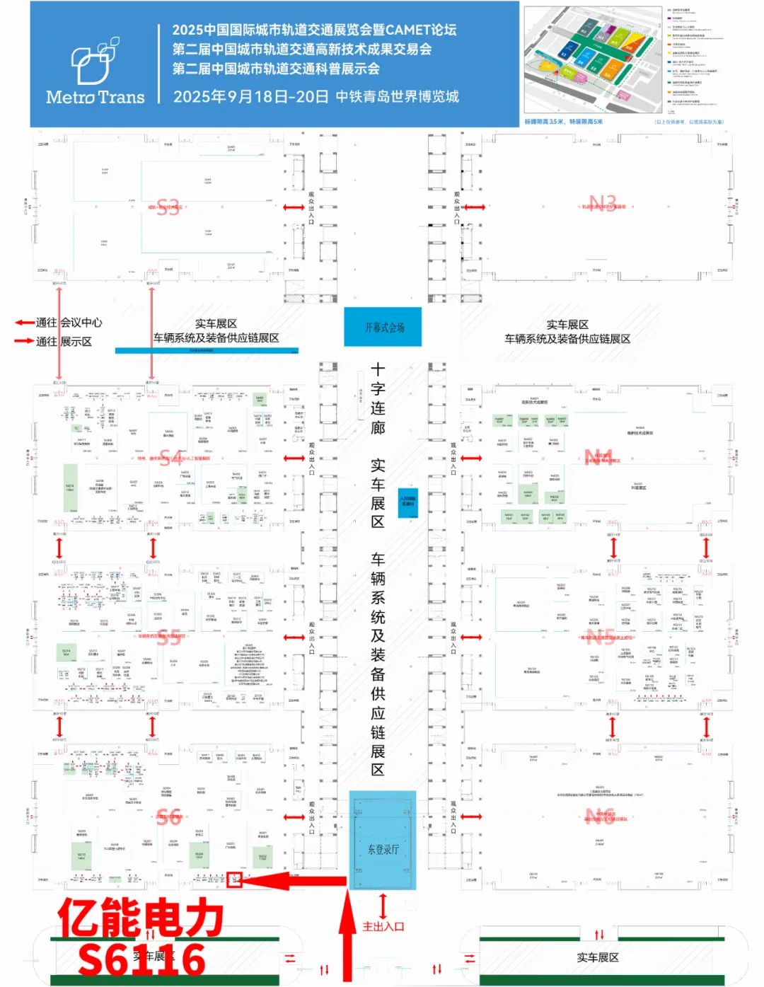 无锡亿能电力展位路线指南:主出入口左转即可到达S6展区,第4个展位即到达S6116(如上图示)