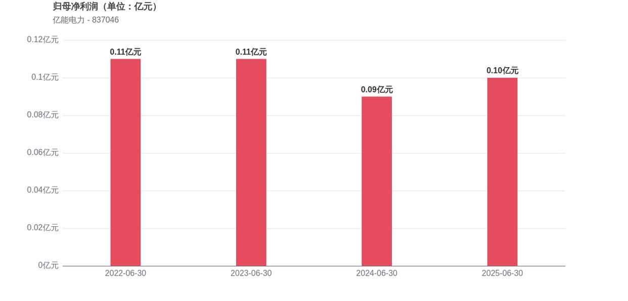 在2025年上半年,亿能电力的经营业绩保持温和增长态势,实现营业收入1.02亿元,同比增长4.66%,归母净利润0.10亿元,同比增长1.47%。
