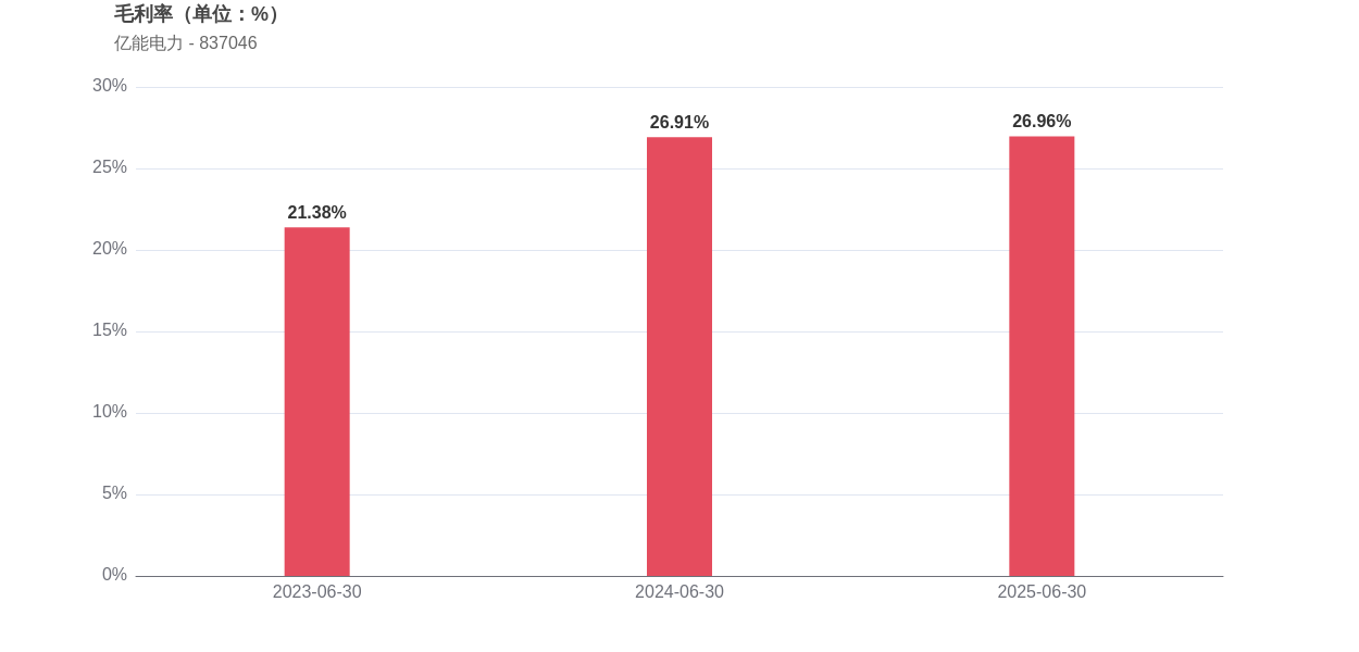 从反映盈利质量的指标来看,亿能电力净利率由2024年上半年的9.64%下滑至9.34%,毛利率从26.91%微升至26.96%,净资产收益率为3.85%,同比下降0.04个百分点。