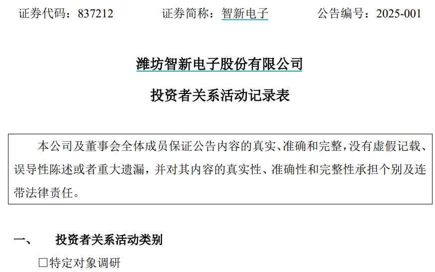 2月12日,北交所上市公司智新电子(837212.BJ)发布了《投资者关系活动记录表》,披露公司接待了华源证券、九泰基金、山西证券等数十家投资机构的线上调研,公司董事会秘书赵鑫参与并解答投资机构代表提问。