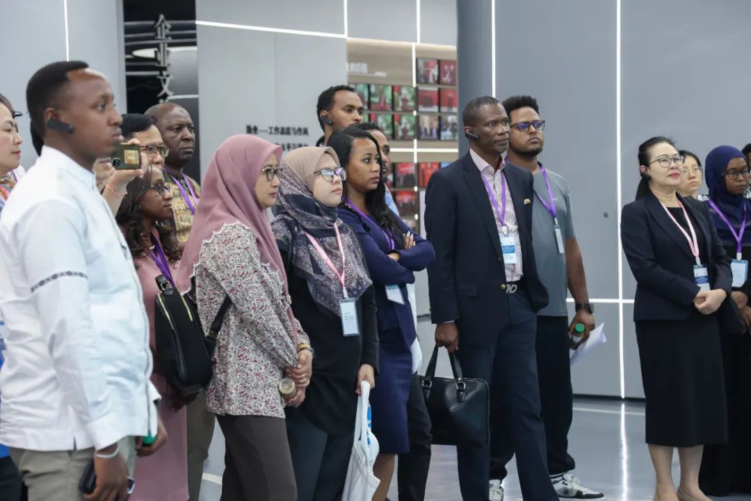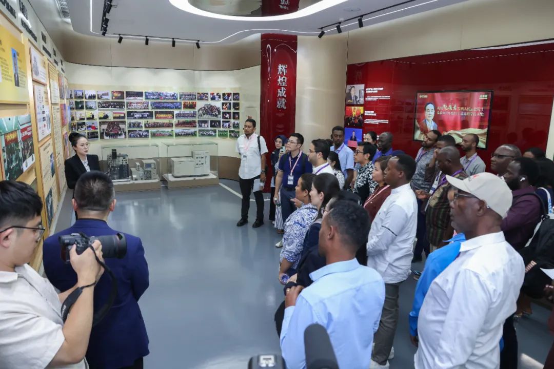 随后,众人移步科技博物馆。这里陈列着三元基因企业发展的珍贵印记,从早期研发的艰辛探索,到如今取得的多项创新成果,每一个展品、每一段讲解,都在诉说三元基因对创新的追求。外宾们近距离感受到了“具有中国自主知识产权的基因工程一类新药、国家GMP认证的基因工程药物生产线、运德素?——中国基因工程药物的优质品牌”。外宾对三元基因“以创新驱动发展,用科技守护健康”的发展历程频频点赞。