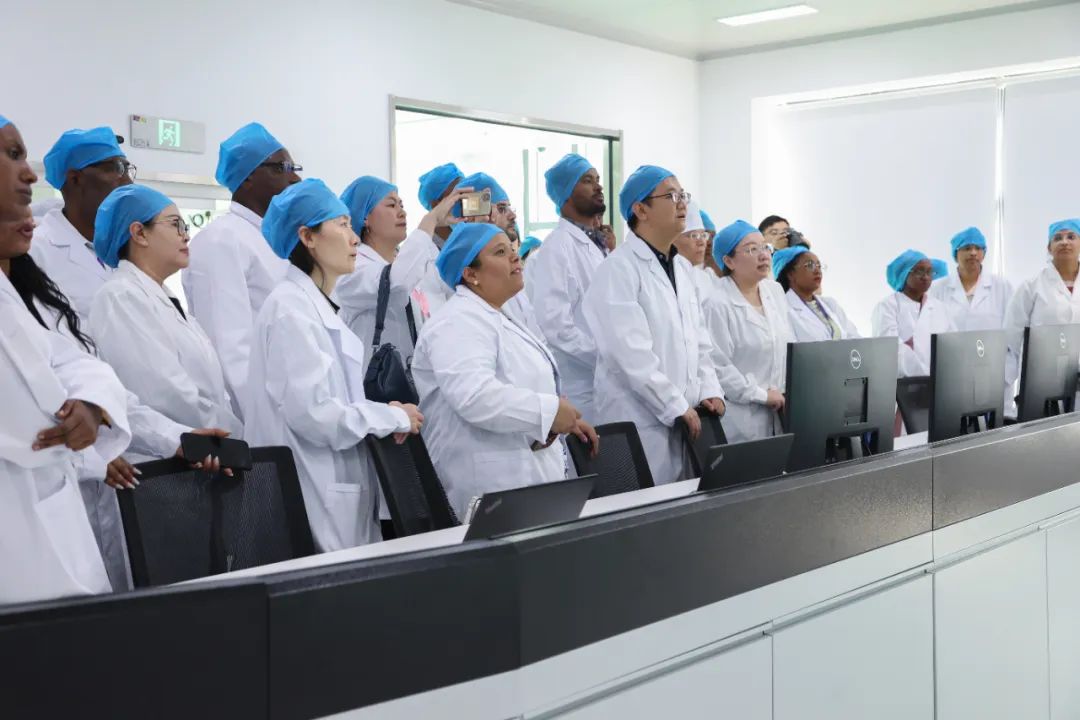 然后,外宾走进生产车间,成为本次活动的“科技高光时刻”。在智能化和数字化生产车间,先进的制药设备有序运转,数智化管理系统实时呈现从原料投入到成品产出的全流程数据。程永庆董事长强调,“数智化是生物医药行业的未来,三元基因构建全生命周期智能化、数字化管理体系,让研发更高效、让生产更精准、让质量更可控,这不仅是企业提质增效的路径,更是保障药品安全、推动行业升级的必然选择”。外宾们直观见证医药企业如何借助数智化手段重塑研发、生产、运营体系与流程,对中国医药制造的数智化水平有了全新认知。