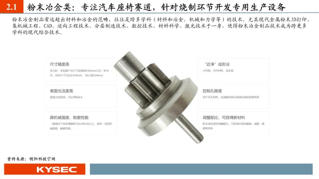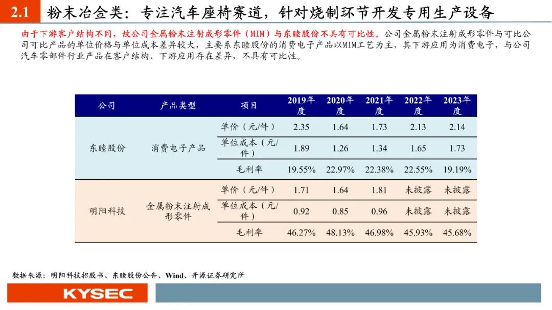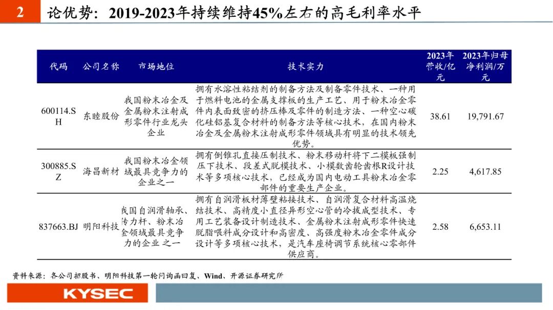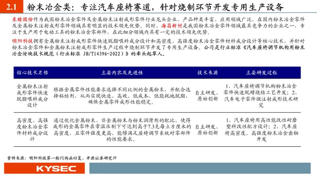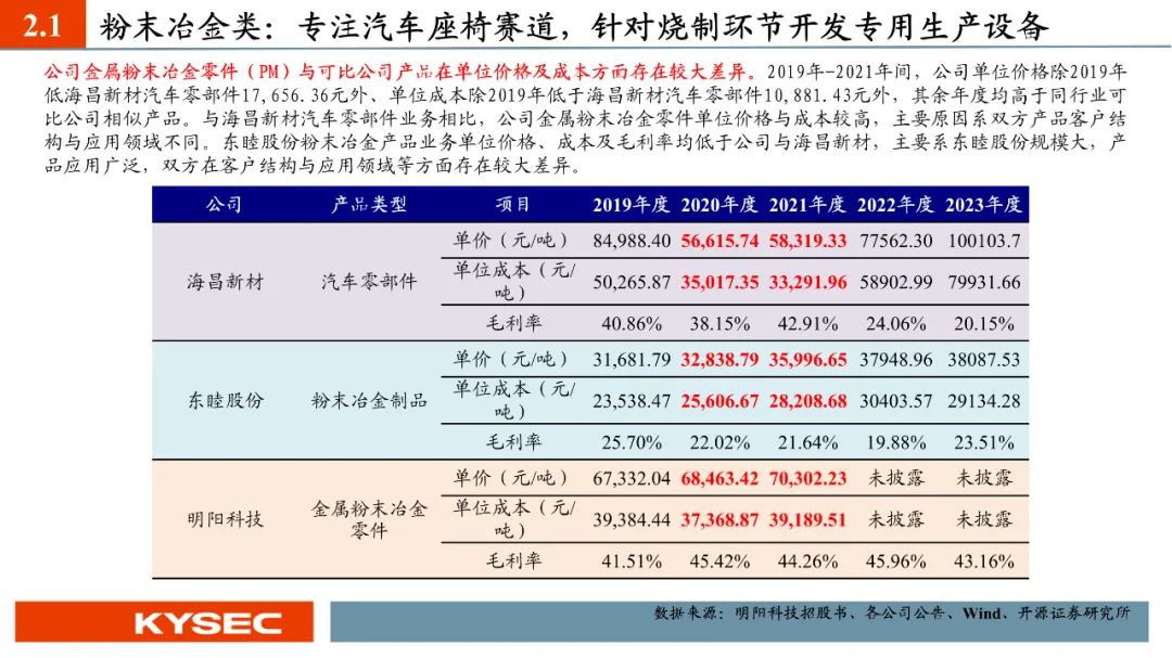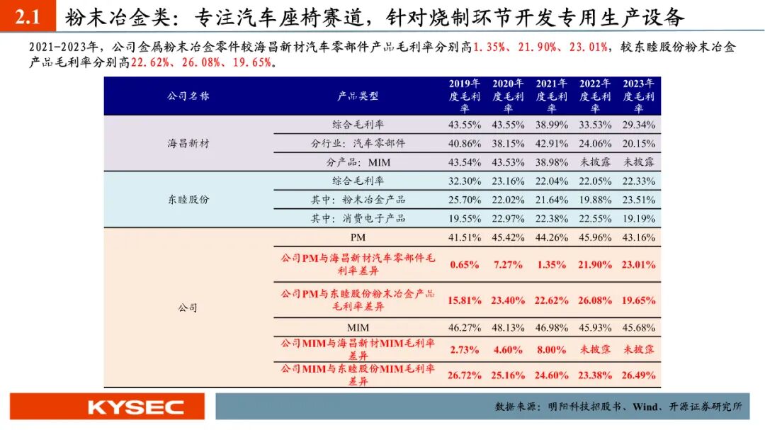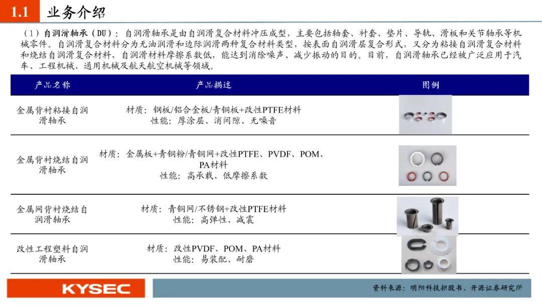 高毛利率佐证赛道优势及技术壁垒:明阳科技毛利率水平在2019年-2023年间持续维持45%左右水平,高于双飞集团、海昌新材、长盛轴承、东睦股份4家可比公司。其中,二层复合自润滑轴承为公司核心产品,实现了国产替代,带动了自润滑轴承类业务整体毛利率,形成竞争壁垒。核心产品市占率近30%:2021- 2023年公司头部客户结构维持稳定,供给第一大客户华域汽车的自润滑轴承、传力杆等产品均有70%以上覆盖占比。根据中汽协和乘联会数据测算得知,2021年公司自润滑轴承、传力杆在全国乘用车座椅调节系统零部件行业市场份额分别为29.18%和27.28%,“专精”属性维系公司核心产品市占率处于高位稳定。