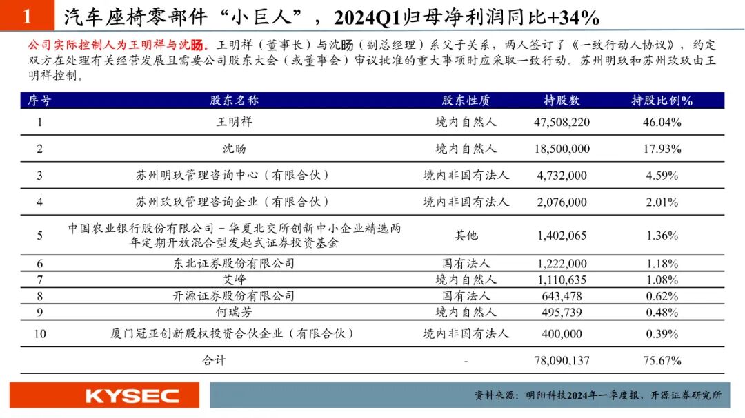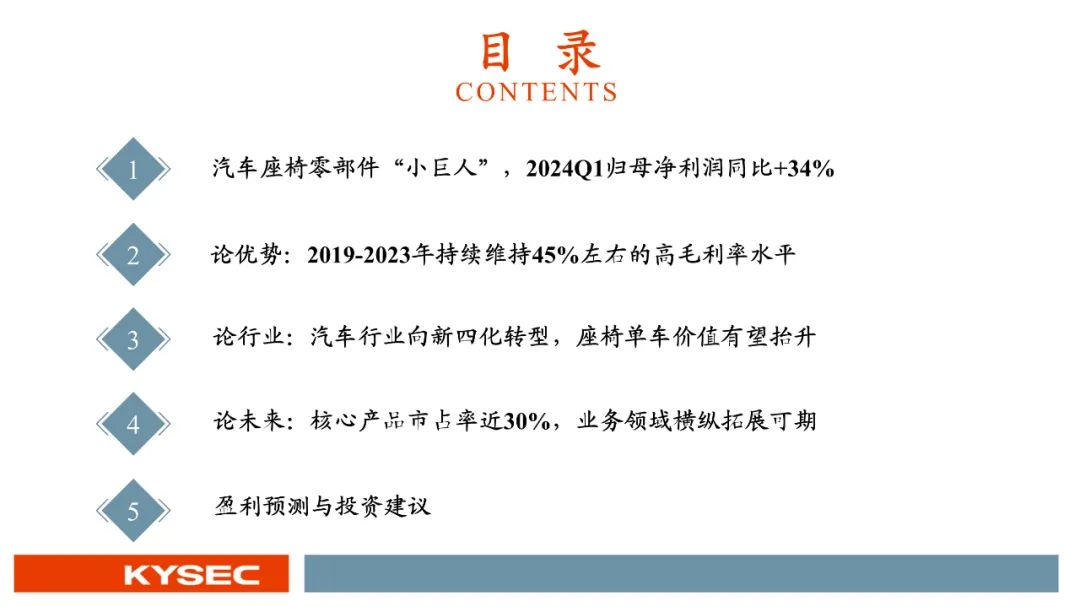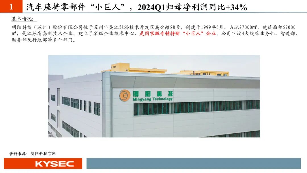 汽车座椅零部件“小巨人”,2024Q1归母净利润同比增长34%