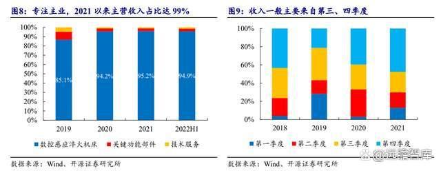 收入一般主要来自第三、四季度。每年第一季度由于春节假期因素营业收入占比会相对较小。同时,下游客户通常倾向于在上半年制定采购计划,机床从生产到验收总的周期为7-12 个月左右,因此受下游客户的设备采购计划制定、机床生产周期、设备验收进度的影响,每年第三、四季度确认收入的金额相对较高。