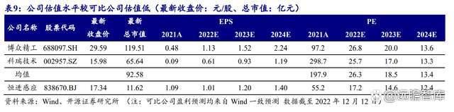 我们预计公司2022-2024年的归母净利润分别为0.68/0.80/0.94亿元,对应EPS分别为1.01/1.20/1.40元/股,对应当前股价的 PE 分别为 17.2/14.6/12.4 倍。恒进感应 PE 低于可比公司 PE 2021,估值水平较低。