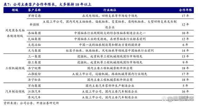 下游客户为风电轴承、工程机械、汽车工业、基础机械部件等领域的龙头企业。