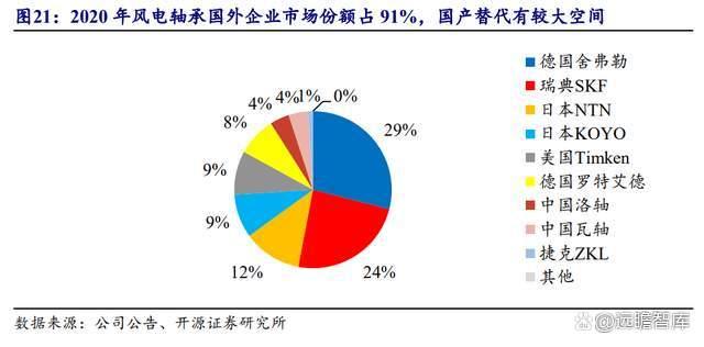 而目前全球风电轴承市场主要由日、美、德等外资占据,洛轴、瓦轴、新强联等国内企业合计市场份额不到 10%。