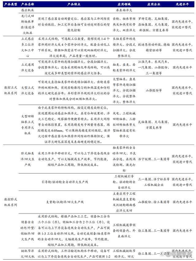 1.1、产品情况:高档数控感应淬火机床为主,多数实现进口替代