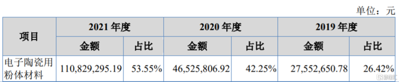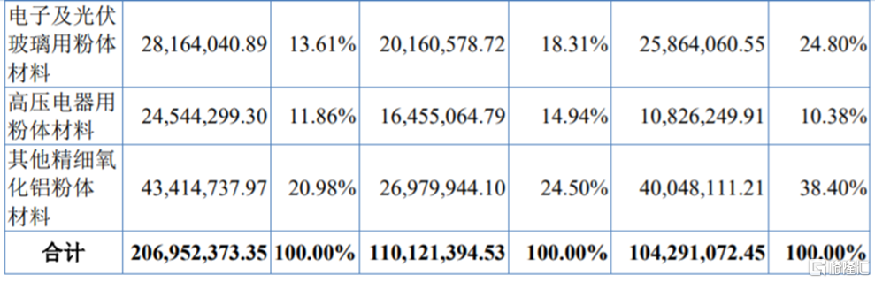 具体来看,报告期内,天马新材的收入主要来源于电子陶瓷用粉体材料、电子及光伏玻璃用粉体材料、高压电器用粉体材料、其他精细氧化铝粉体材料这几大业务。其中,电子陶瓷用粉体材料收入呈上升趋势,营收占比相对较高。
