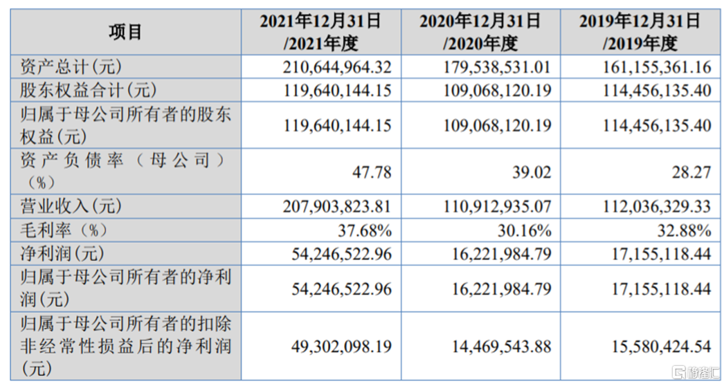 2019-2021年,天马新材的营收分别为1.12亿元、1.11亿元和2.08亿元,对应的归母净利润分别为1715.51万元、1622.2万元和5424.65万元,业绩存在波动。