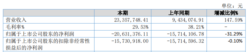 *ST广道(839680.BJ)2025年半年度报告显示,2025年上半年,公司实现营业收入2335.77万元,同比增长147.59%;归属于上市公司股东的净利润-2063.14万元,上年同期-1571.41万元;归属于上市公司股东的扣除非经常性损益后的净利润-1573.09万元,上年同期-1571.46万元。