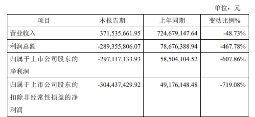 据宁新新材2024年度业绩快报公告,报告期内,公司实现营业收入为371,535,661.95元,较去年同期下降48.73%;归属于上市公司股东的净利润为-297,117,133.93元,较去年同期下降607.86%;归属于上市公司股东的扣除非经常性损益的净利润为-304,437,429.92元,较去年同期下降719.08%。
