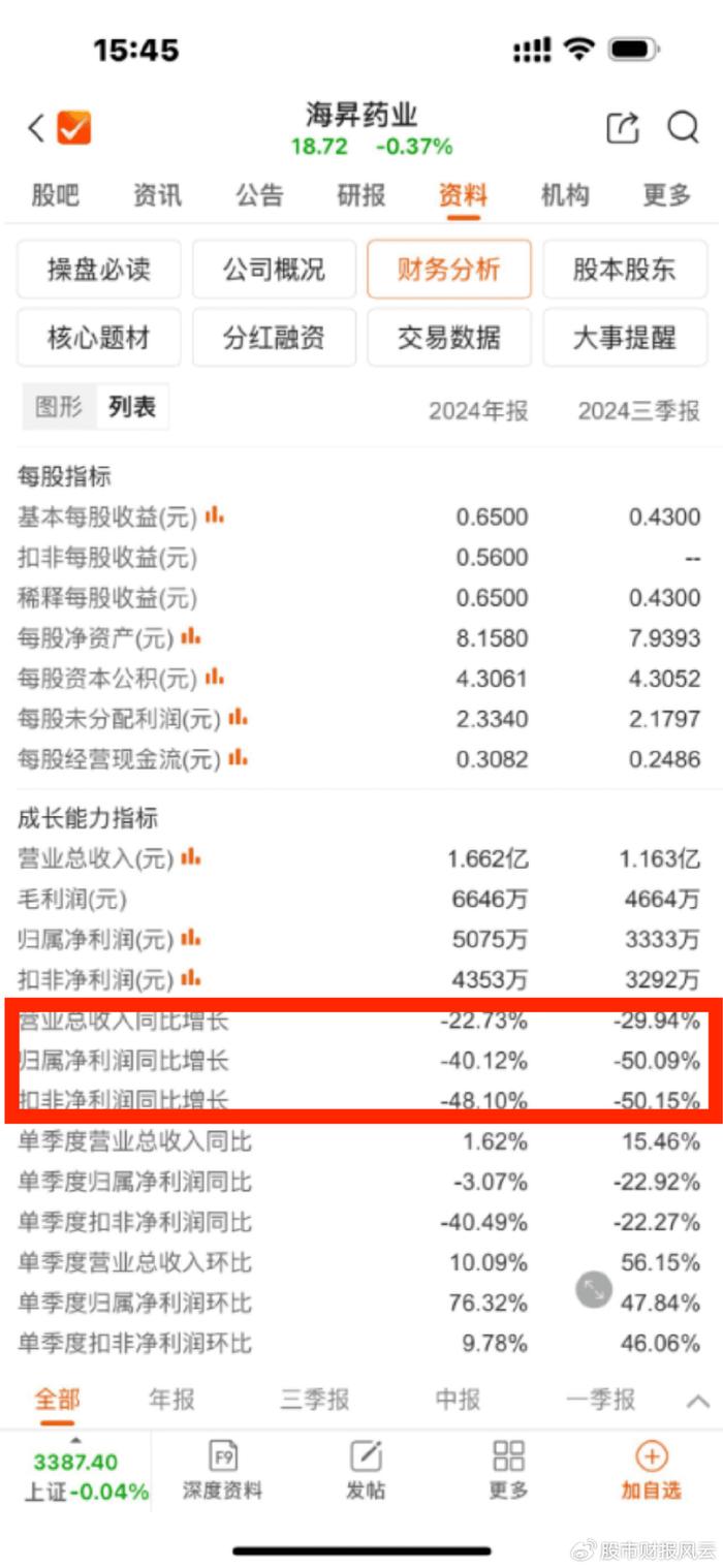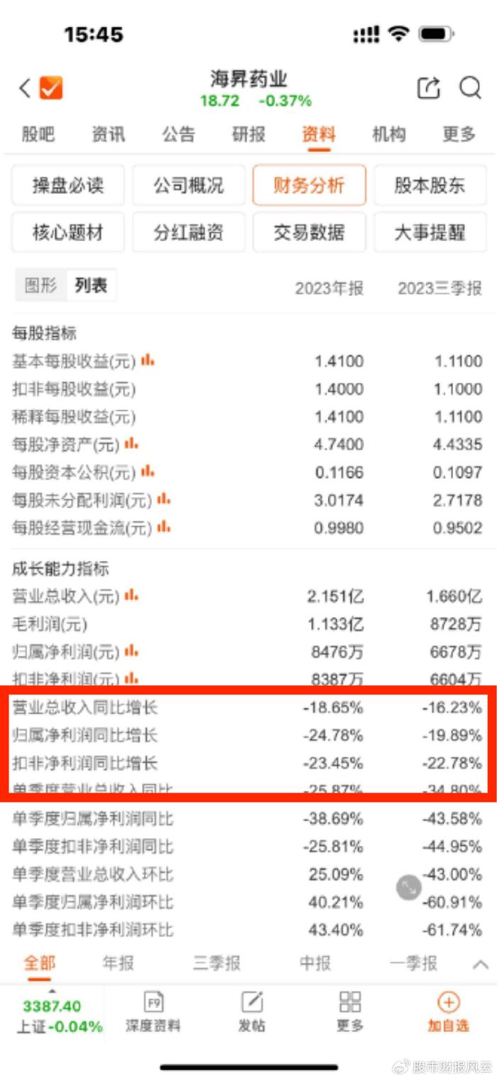 咱先把海昇药业的财务数据扒开晾晾。2023 年,它的营业收入同比下滑 18.61%,归母净利润更狠,直接砍了 24.78%。这啥概念?就好比你开家小店,去年赚 10 万,今年直接掉到 7 万多,而且收入也跟着缩水。