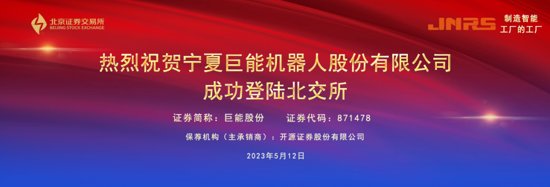 2023年5月12日,宁夏巨能机器人股份有限公司(证券代码:871478)在北交所上市。