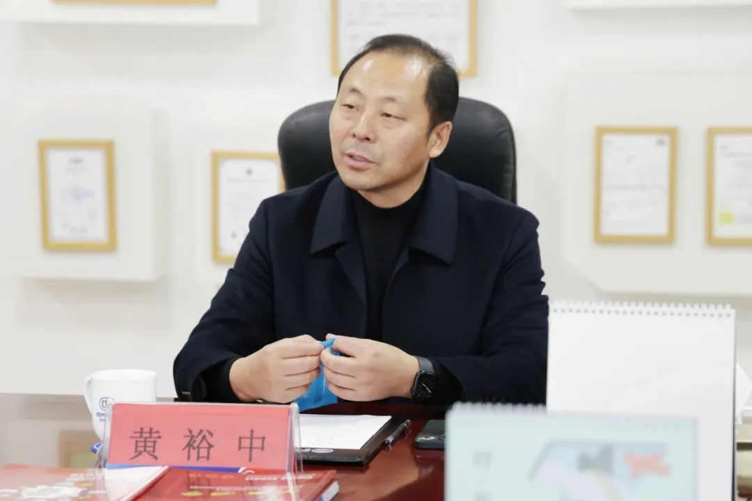 参观之后,一行人来到会议室开展座谈交流。黄董发表了热情洋溢的致辞。他首先对郭团长、卫教授的到来表示热烈的欢迎和衷心的感谢,简要介绍了中裕科技在科技创新和人才引进方面所做的努力和取得的成绩,并期待聆听两位专家领导对公司技术研发、成果转化、人才培育等方面的宝贵意见,也希望能借此机会,在产学研合作平台搭建等方面展开深度交流,探索合作新路径。