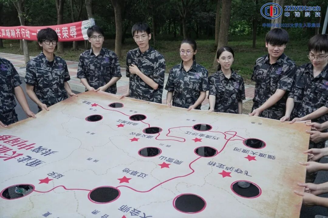 一块印着长征路线的大布,团队成员拉紧布面,让小球从瑞金“出发”,绕过“大渡河”等洞眼,一路会有人手颤至麻亦咬牙坚持,“左方微调!球悬一线!”用长征拓展演绎“一群人一根管一条心一起拼一定赢”的中裕哲学。