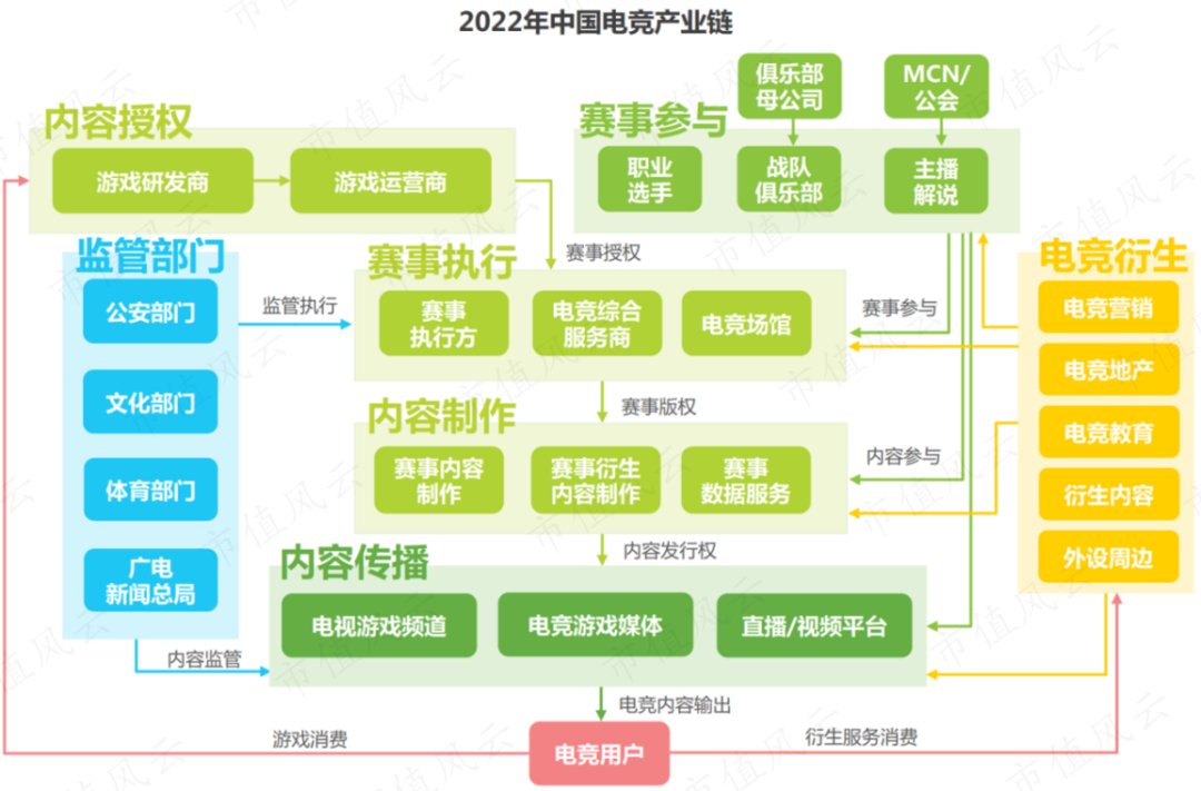目前,国内电竞产业已形成涵盖内容制作、内容监管、赛事参与、电竞衍生等板块在内的完整产业链,2021年国内电竞用户整体规模约5亿人,电竞开放生态基本形成。