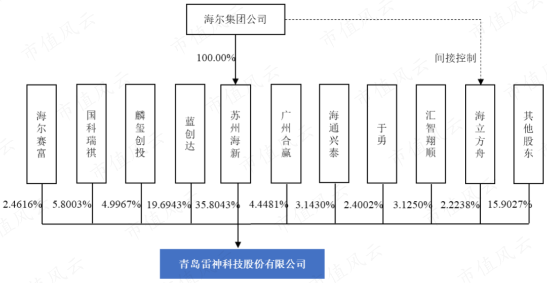 而在股东层面,海尔集团作为雷神的实控人一直没有改变,截至招股书签署日,海尔集团合计控制雷神38.03%的表决权。