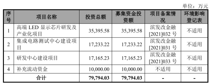 视芯科技原拟募资7.98亿元,分别用于高端LED显示芯片研发及产业化项目、集成电路测试中心建设项目、研发中心建设项目、补充流动资金。