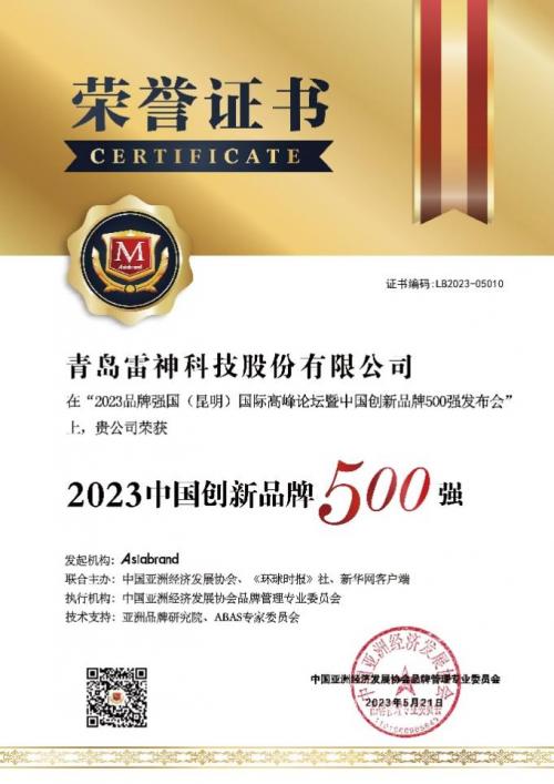 值得一提的是,自公司成立以来,雷神科技已先后获得国家高新技术企业、中国计算机行业发展成就奖、山东省专精特新企业、山东省瞪羚企业等多项荣誉,除“2023中国创新品牌500强”外,雷神科技还连续两年入选“世界品牌实验室”《中国500最具价值品牌》,上榜《每日经济新闻》2023中国上市公司新锐品牌价值榜Top50。