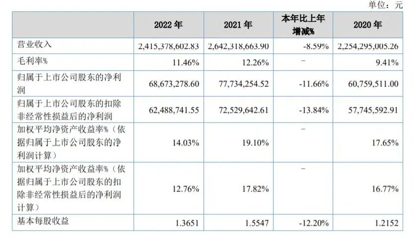 不仅股市上不利,业绩上,雷神科技也遇到了近年来的首次下滑。3月31日,雷神科技发布2022年财报,2022年雷神科技实现营收24.15亿元,同比下降8.59%;实现净利润6867.33万元,同比下降11.66%;毛利率为11.46%,同比下降0.8个百分点。