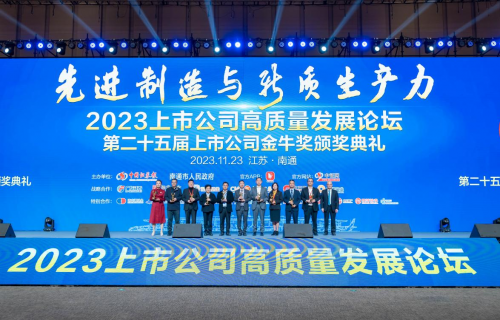 11月23日,由新华社旗下权威财经媒体《中国证券报》主办的“2023中国上市公司高质量发展论坛”在江苏南通举行。国家发改委宏观经济研究院副院长宋葛龙、北京证券交易所副总经理孙立出席,并围绕打造新质生产力、构建产业发展新格局、更好发挥资本市场枢纽作用等主题进行主旨演讲,与现场3位科学院院士、80多家上市公司董事长、507家上市公司代表、750余位嘉宾,共同见证了2022年度上市公司金牛奖的正式揭晓。