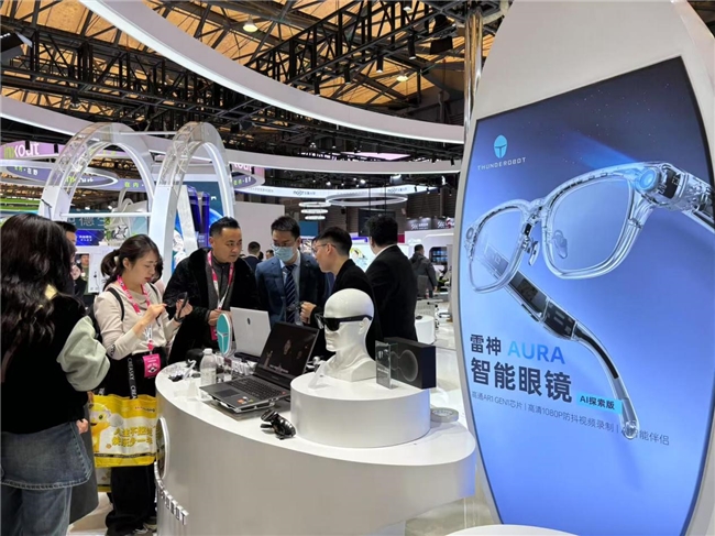 此外,雷神AURA智能眼镜AR轻享版、AI探索版也收获了来自国内外的高度认可。尤其是雷神AURA智能眼镜AR轻享版的Hi-Res级的立体扬声,以及AI探索版的高清1080P防抖视频录制,支持AI智能助手、大型语言模型对话、多语言实时翻译、AI拍照识物等功能,吸引了众多观众入手体验,展区现场人头攒动,热度居高不下。