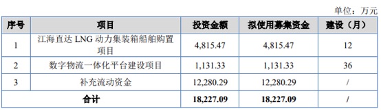 华光源海12月14日披露的招股说明书显示,公司拟募集资金18,227.09万元,用于江海直达LNG动力集装箱船舶购置项目、数字物流一体化平台建设项目、补充流动资金。