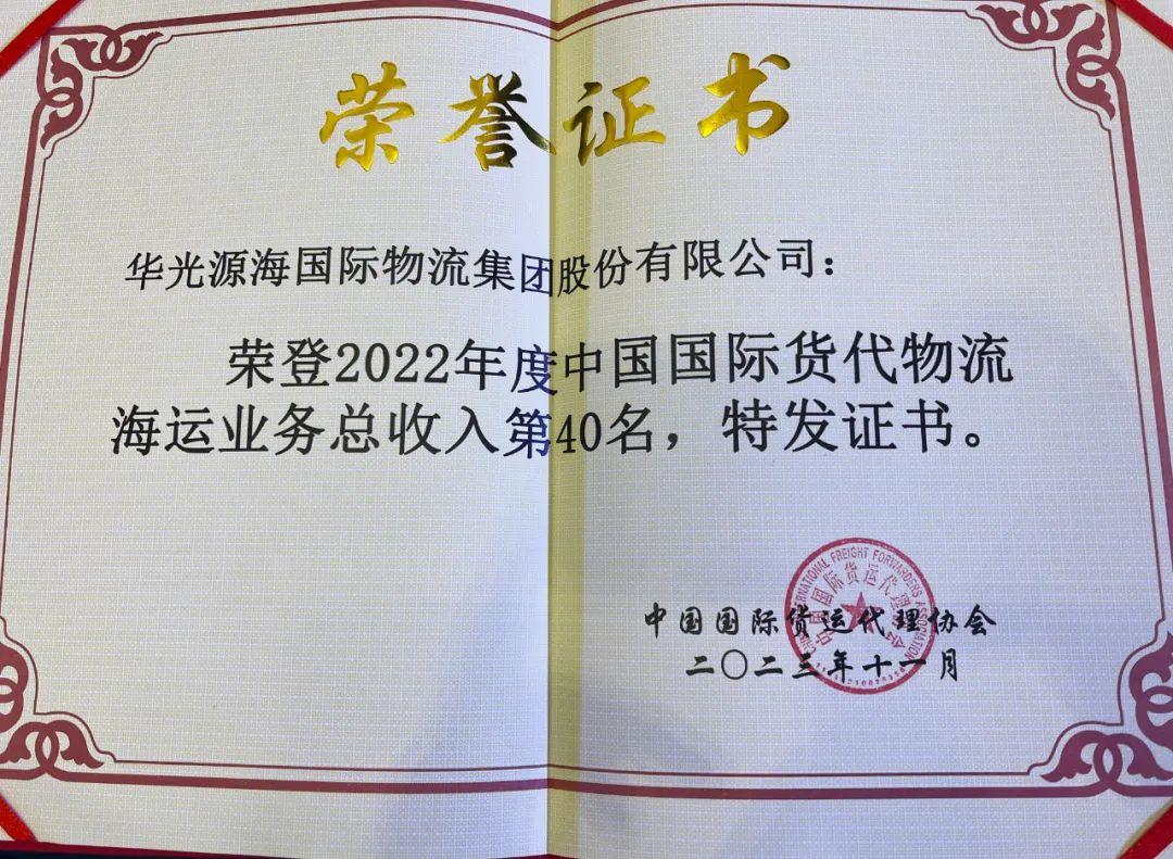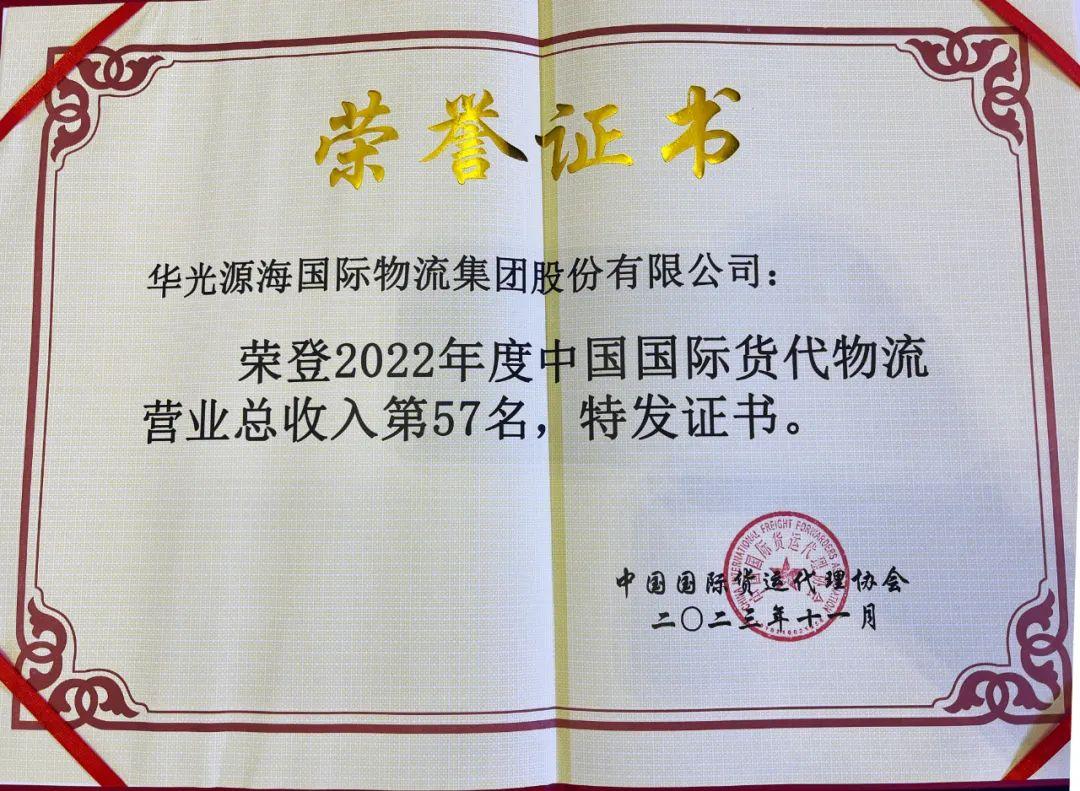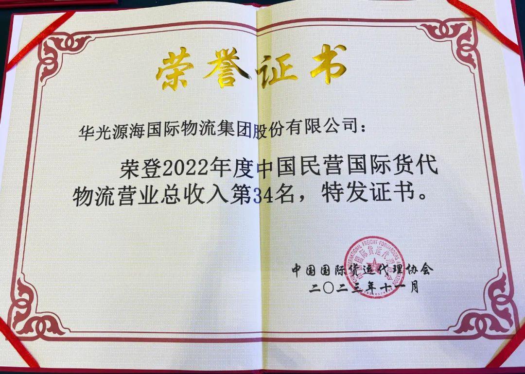 11月17日消息,2023年度中国国际货代物流行业高质量发展论坛暨中国国际货代物流行业发展蓝皮书(2022)在11月15-17日发布会在天津举办,并且发布了2022年度中国国际货代物流业总营业收入前100企业,其中,华光源海国际物流集团股份有限公司荣登2022年度中国国际货代物流海运业务总收入第40名、2022年度中国民营国际货代物流营业总收入第34名、2022年度中国国际货代物流营业总收入第57名!