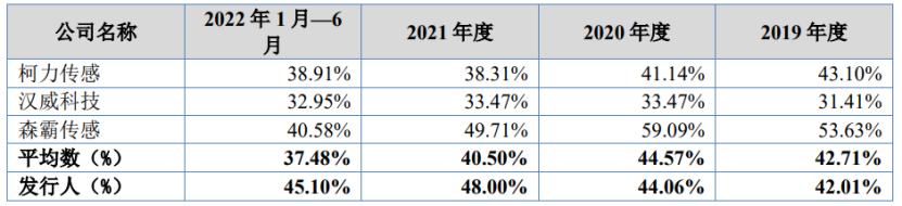 2019年、2020年,公司毛利率略低于可比公司平均水平;2021年、2022年1-6月高于可比公司平均水平。