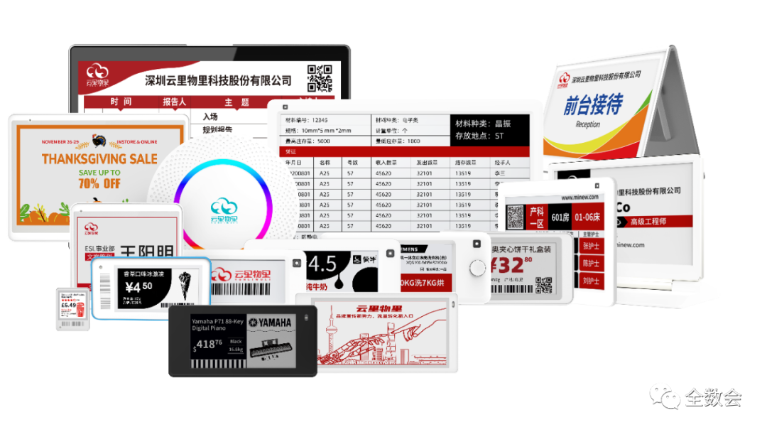 云里物里自主研发生产的 ESL 电子标签包括 1.54、2.13、2.66、2.9、3.5、4.2、5.8、7.3、7.5、11.6英寸等多种屏幕尺寸,拥有双面显示、全彩显示、按键、低温、防水等不同功能特点,适用于办公、工业仓储、医疗、零售、校园和楼宇等各类具有信息显示需求的场景。