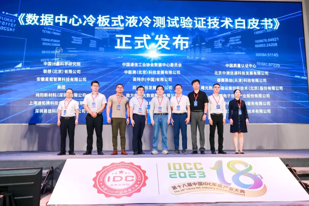 会上,由中国计量科学研究院、中国通信工业协会数据中心委员会、中国质量认证中心及曙光数创等众多单位共同编写的《数据中心冷板式液冷测试验证技术白皮书》发布,旨在提升冷板式液冷系统验证方法的标准化和一致性,完善冷板液冷的生态系统,推动冷板液冷系统的利用。