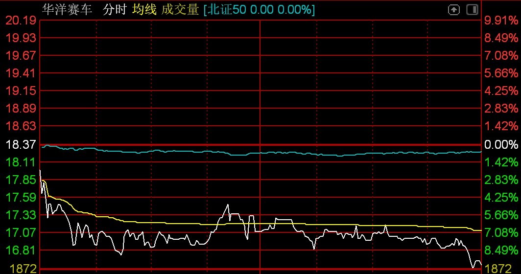 下跌方面,华洋赛车今日低开低走,尾盘跌超9%。