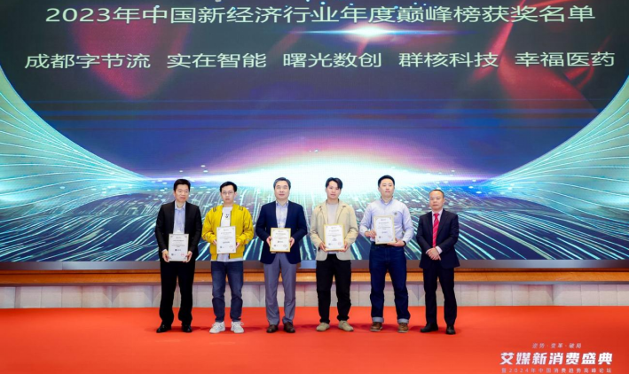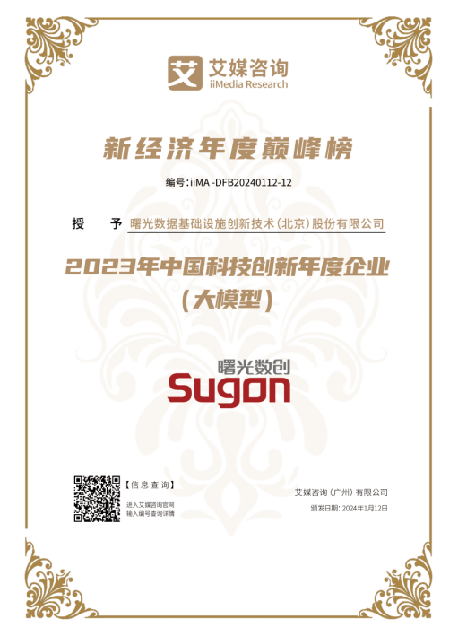 2024年1月12日,由全球新经济第三方数据挖掘和分析机构艾媒咨询(iiMedia Research)举办的“艾媒新消费盛典暨2024年中国消费趋势高峰论坛”在广州圆满闭幕。大会现场揭晓“2023年(第8届)中国新经济行业年度巅峰榜”获奖榜名单,曙光数创荣登该榜单,并被授予“2023年中国科技创新年度企业”荣誉称号!