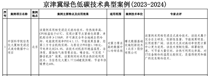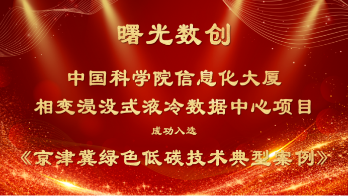 近日,曙光数创中国科学院信息化大厦相变浸没式液冷数据中心项目成功入选《京津冀绿色低碳技术典型案例(2023-2024)》。