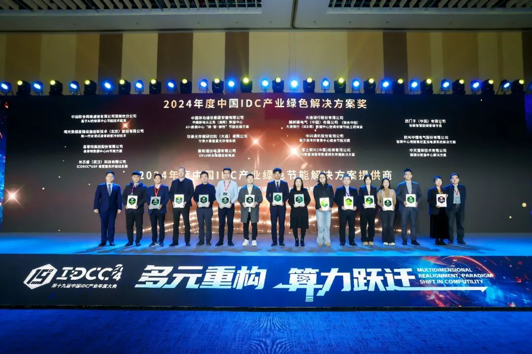 曙光数创,作为液冷数据中心领域的先行者,多年来一直致力于构建液冷产业生态,并凭借深厚的技术积累和创新实力,在本次大会上荣获了“2024年度中国IDC产业绿色解决方案奖”。