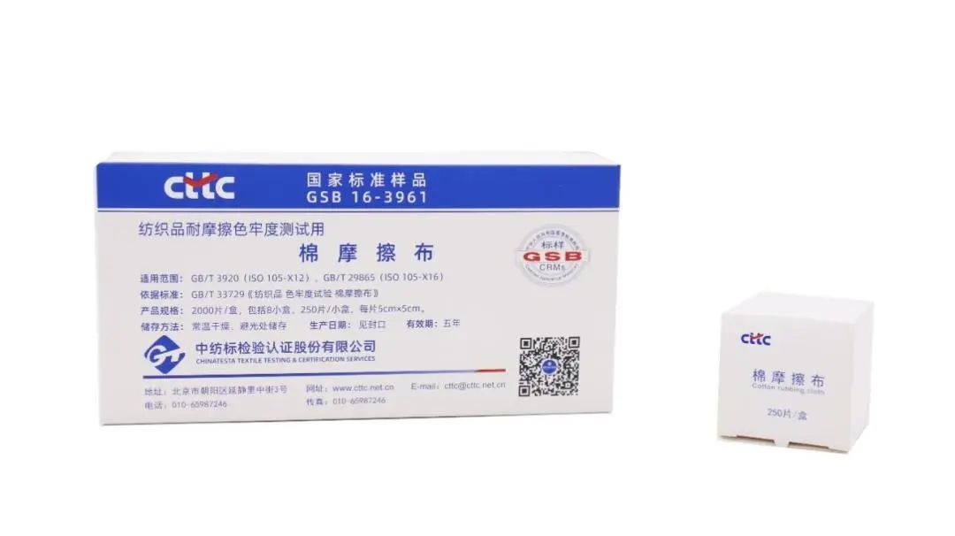 T/CNTAC RM 1-2019 《纺织品耐摩擦色牢度测试用棉摩擦布标准用品》( GSB 16-3631-2022)依据GB/T 33729-2017(ISO 105-F09:2009,MOD)《纺织品色牢度试验棉摩擦布》研制,适用于GB/T 3920(ISO 105-X12:2001,MOD)《纺织品色牢度试验耐摩擦色牢度》和GB/T 29865(ISO 105-X16:2001,MOD)《纺织品色牢度试验耐摩擦色牢度小面积法》,试验时安装在耐摩擦色牢度试验仪的摩擦头上作为摩擦布对试样进行干、湿摩擦试验。