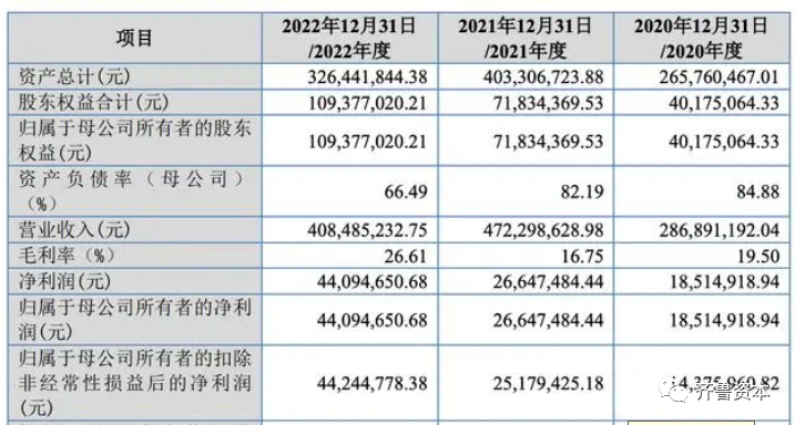 根据公司招股说明书,2020年-2022年,泰鹏智能营业收入分别为2.87亿元、4.72亿元、4.08亿元,净利润分别为1851.49万元、2664.75万元、4409.47万元。