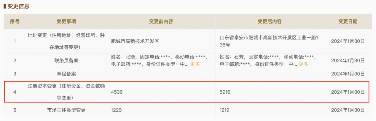 2月2日,山东泰鹏智能家居股份有限公司注册资本增加,从“4536万元人民币”增加到“5916万元人民币”,增幅为30.4%。