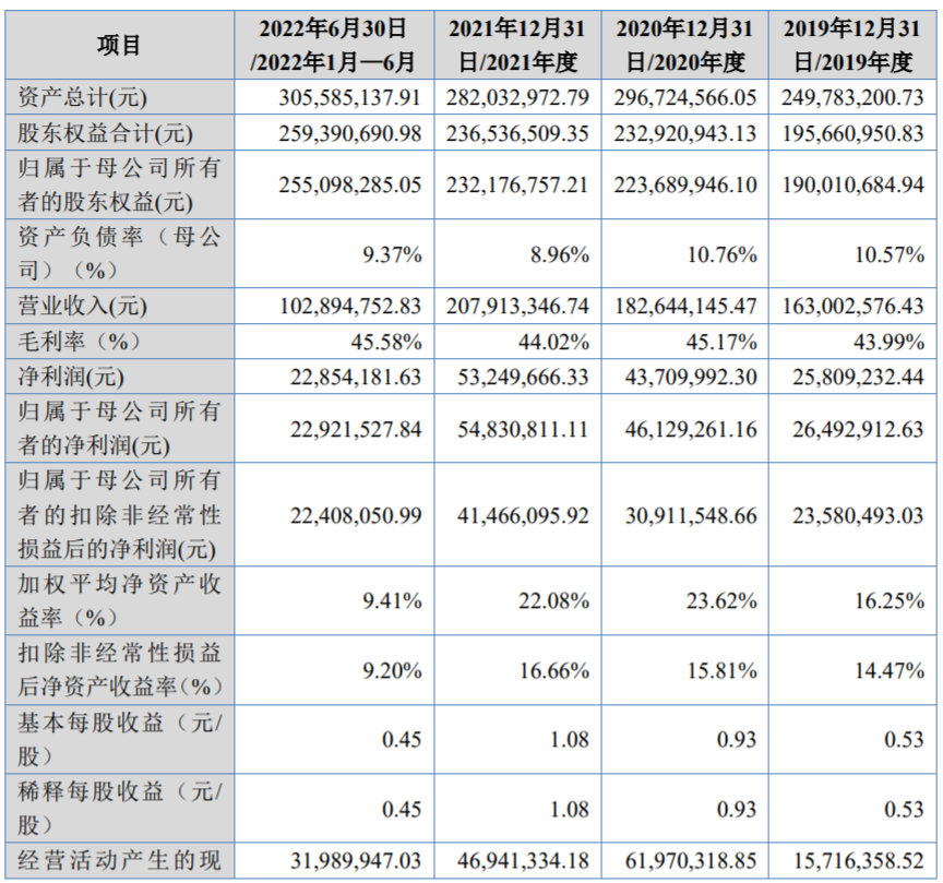 2019年至2022年1-6月,新赣江的营业收入分别为16,300.26万元、18,264.41万元、20,791.33万元和10,289.48万元;净利润分别为2,580.92万元、4,371.00万元、5,324.97万元和2,285.42万元;归属于母公司所有者的净利润分别为2,649.29万元、4,612.93万元、5,483.08万元和2,292.15万元;归属于母公司所有者的扣非净利润分别为2,358.05万元、3,091.15万元、4,146.61万元和2,240.81万元;经营活动产生的现金流量净额分别为1,571.64万元、6,197.03万元、4,694.13万元和3,198.99万元。