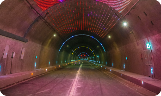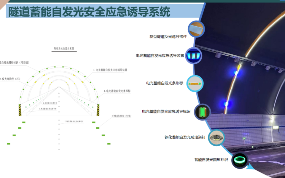 隧道蓄能自发光安全应急诱导系统通过智能标识、自发光道钉及U型环等安全设施,缓解隧道黑洞/白洞效应,提升行车安全与视觉适应性。