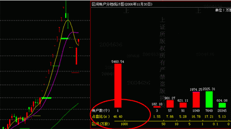大部分投资者操作股票时除了进行必须的基本面、财务指标等相关分析外,还会关心目前该股是否受到主力资金的青睐,以便选择在适当的时机、适当的价格跟进。而研究一只股票的主力资金究竟是由多头主力资金构成,还是由一个主力垄断控制(也就是股市中我们常说的寡头市场),就显得尤为重要。因为,在寡头市场中“一人独大”,主力进出自如。而在多头市场中,任何一个主力在采取某项行动之前,必须首先预测或掌握自己的这一行动对其他主力的影响及其可能做出的反应,如果大家能够达成默契或共识,自然好办,但如果各自为战,我们就要谨慎对待了。 那么,根据什么来判断某只股票究竟是多头博弈还是寡头博弈呢?这在过去恐怕很难有准确的定义和判断方式,而通过赢富数据专家版中的帐户数量来看,就易如反掌了。 在区间帐户分档统计结果中,我们把持股数量最大的账户由多个账户组成的情形称为多头博弈;把持股数量最大的账户由一个账户构成(孤家寡人)的情形称为寡头博弈。通常我们把寡头还称为孤庄,见图一,孤家寡人,一个“人”说了算,行事必有其特点。想拉就拉,想打就打,多出现急涨急跌的走势,我们只要看这一个帐户的动向就可以把握该股的起伏涨跌,这是最简单、也是最省心的跟庄方式,一旦该帐户出现减仓的情况,我们就该考虑出局了,无论其事后还有多大的涨幅,我们都不宜去染指了。