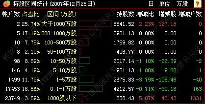 持股区间:由交易所提供的不同持股数量区间的交易账户的持股和增减的情况,包括持股数量,持股比例,账户数量。共分为9个区间。